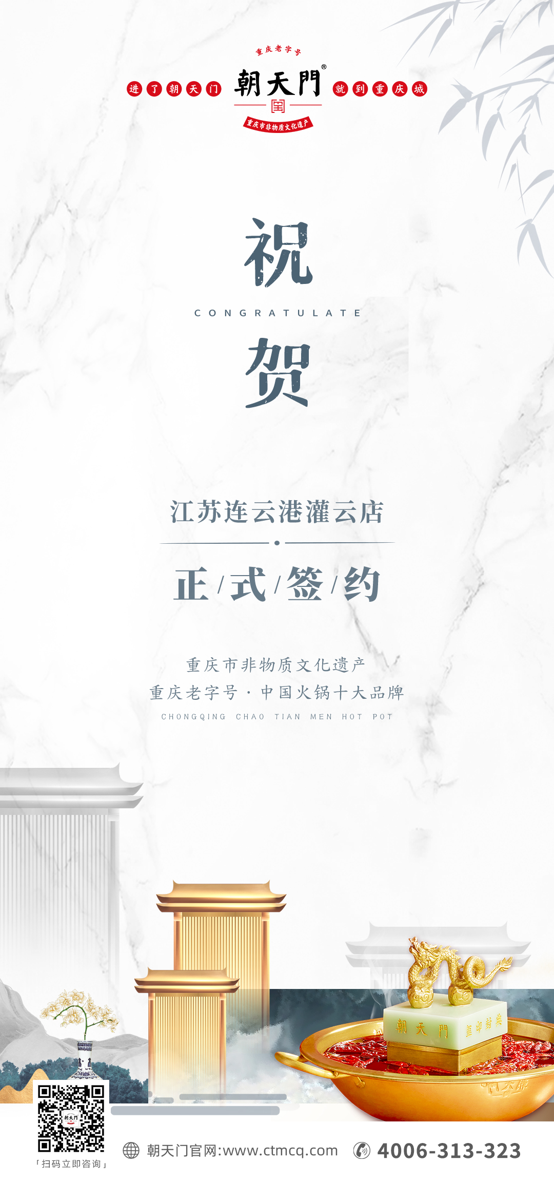 熱烈祝賀江蘇灌云縣孫總與朝天門火鍋簽訂正式合同!