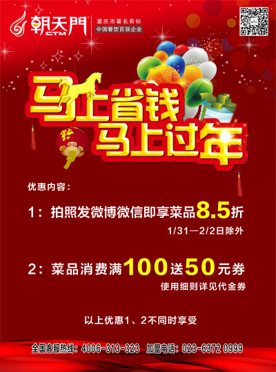 時間:2016-03-02 17:42 作者:朝天門火鍋活動時間:至2014年2月(此活動已結(jié)束)